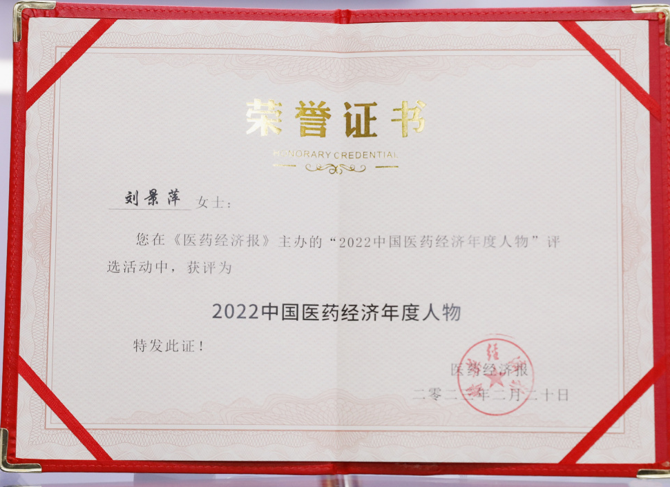 OG视讯药业集团董事长刘景萍当选“2022中国医药经济年度人物”
