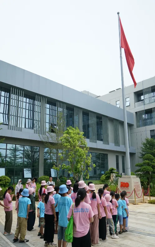 紧接着,孩子们来到了建党百年庆典红旗——070号红旗前。讲解员讲述了OG视讯药业集团与庆典红旗的深厚渊源。孩子们听得津津有味,眼中闪烁着对党和国家的热爱与敬仰。
